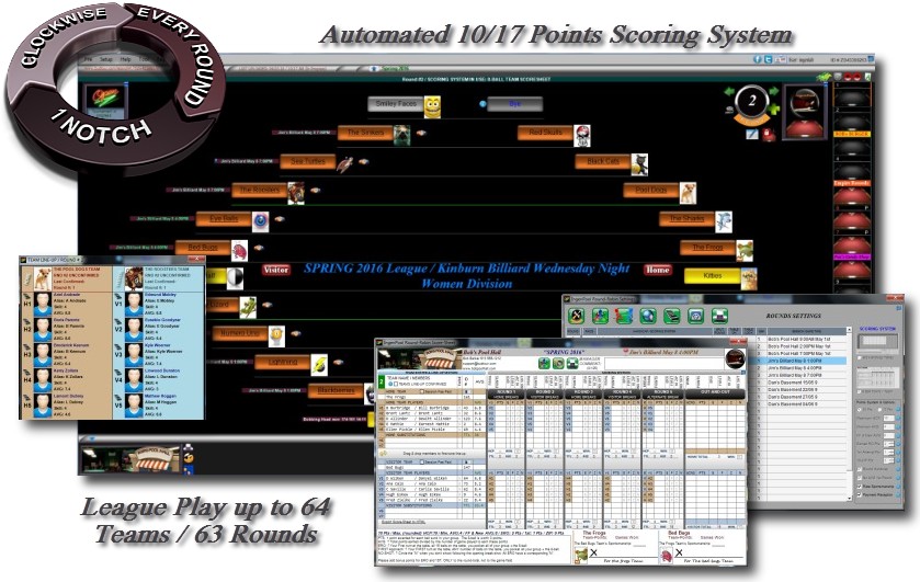 Complete management system for single event or league-play. Individual or Team. Supports all built-in handicap tables + the new and fully automated 10/17 Points scoring system.
